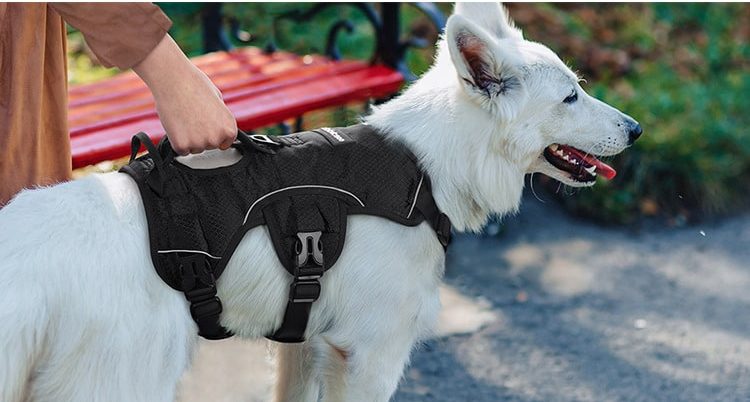 The dog harness with handle rope adds an extra layer of control, allowing you to maintain a firm grip on your pet when needed.